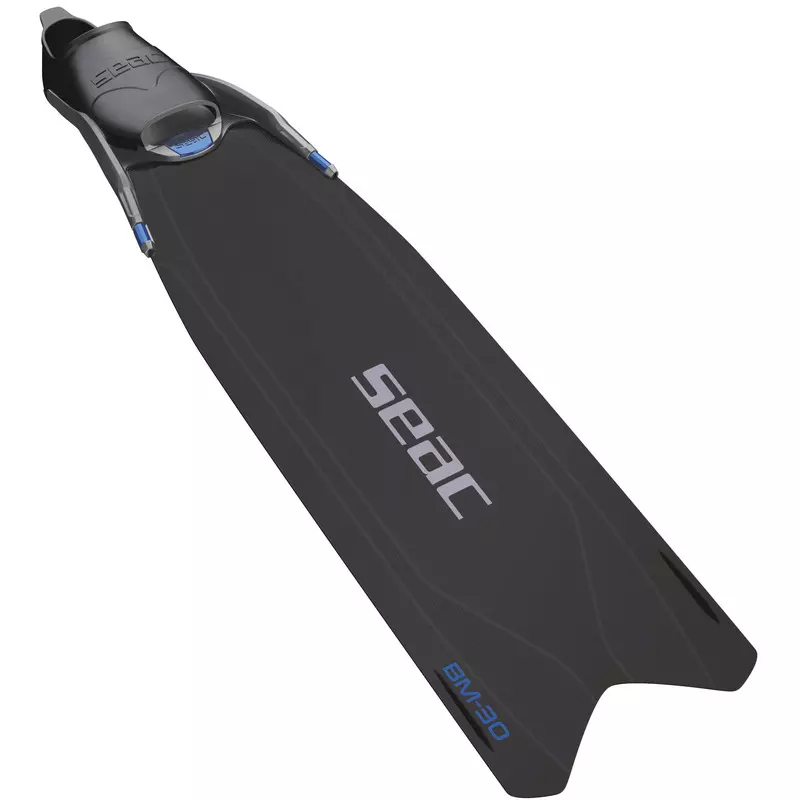 La voilure des palmes SEAC BM-30 est inclinée de 30° pour faciliter à la fois le palmage en surface et pour s’adapter à l’inclinaison naturelle des chevilles en immersion. Les petites ailerons stabilisants placés à l’extrémité de la pale au point de plus grand débit d’eau empêchent l’aileron de dériver latéralement sans compromettre sa bonne flexion.