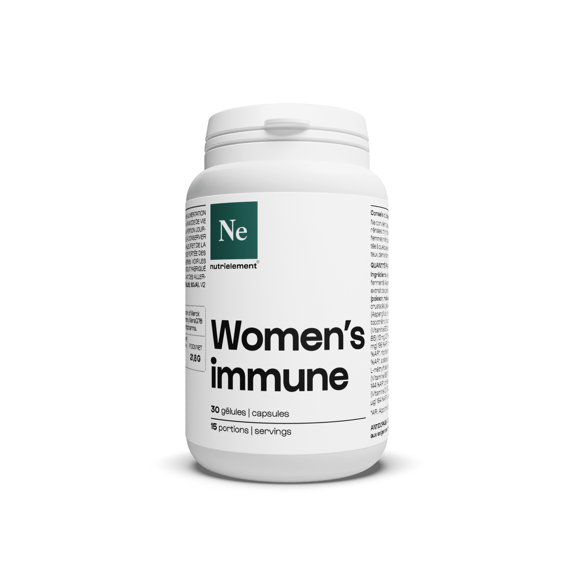 Pour deux gélules de Women’s immune Health, le ratio en vitamines et en minéraux est le suivant :